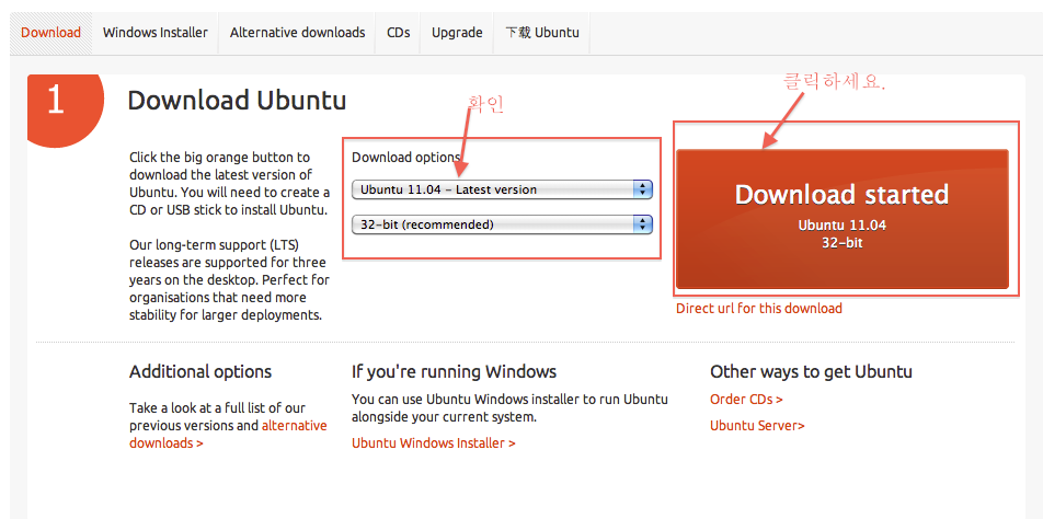 1. 32-bit Ubuntu 11.04 다운로드 ( Ubuntu 웹싸이트로 이동 됩니다. )